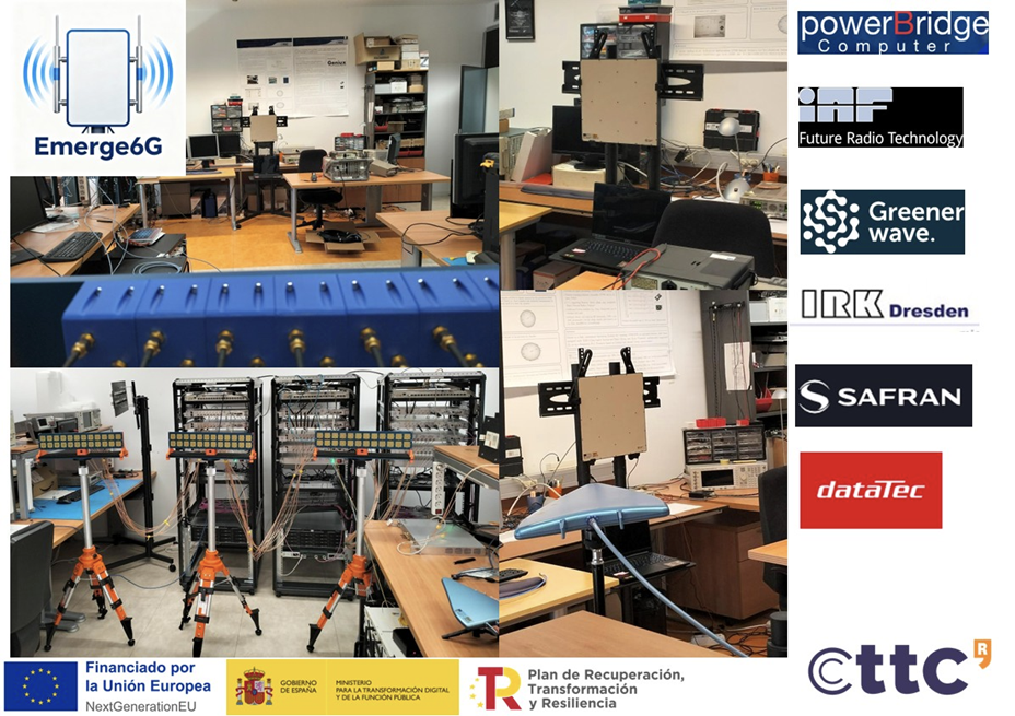 EMERGE6G integrates a set of key technological building blocks: a scalable Software Defined Radio (SDR) platform with multiple units and dozens of RF chains managed by high-performance servers over a high-speed network; antenna panels operating in sub-6 GHz bands such as 2.4 and 3.5 GHz; reconfigurable intelligent surfaces in FR1 and FR2 bands to control radio-wave propagation; and high-precision synchronization based on GPS and White Rabbit technologies, providing sub-nanosecond timing accuracy.